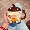 Cute strawberry water cup high-value ceramic mug with lid spoon coffee cup for girls
