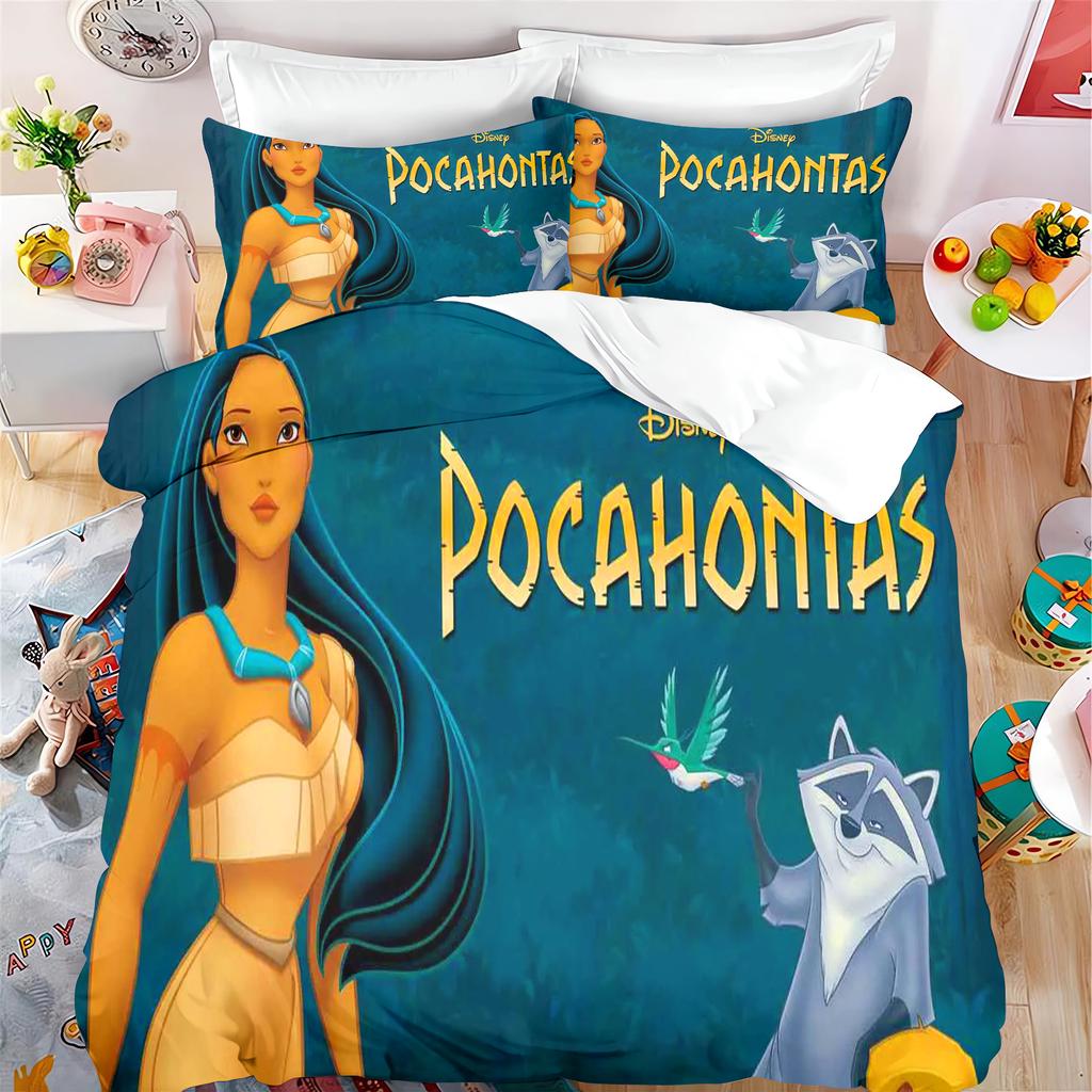 Pocahontas Fairytale Princess Cute Printed Bedding, Anime Cartoon Quilt Cover, Polyester, Skin Friendly, Breathable