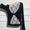 Threaded bottomed shirt women's 2025 new women's clothing, foreign style lace lace splicing square collar inner with long-sleeved waist top