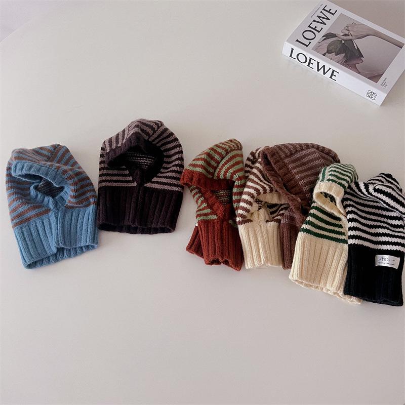 Korean Style Striped Knitted Baby Hat - Warm Wool Windproof Design for Autumn & Winter