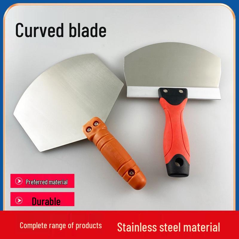 Stainless Steel Gray Curved Fan-Shaped Spatula and Putty Scraper with Thickened Handle - Free Shipping