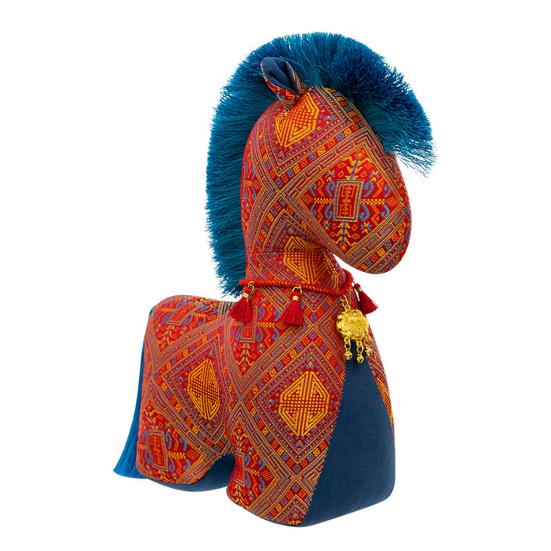 This horse plush doll showcases exquisite craftsmanship with lifelike details, featuring finely sewn mane and tail, vivid facial expressions, and durable stitching that ensures long-lasting quality. Made from high-quality national style printed fabrics, it offers a skin-friendly, delicate touch and is filled with high-density PP cotton for a full, elastic feel. Brightly colored and durable, the fabric highlights traditional craftsmanship's charm.