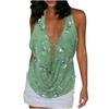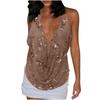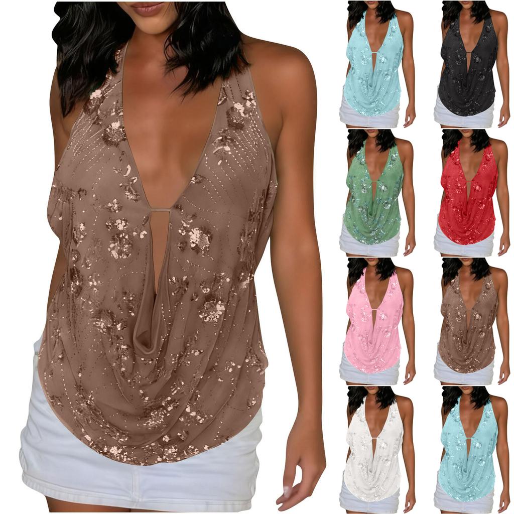 Ladies' Hollow Sequined V-neck Sleeveless Hanging Neck Backless Slim Fit Top