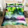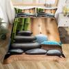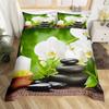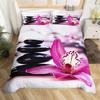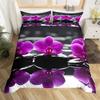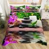 Zen Stones King Duvet Cover Sandy Beach Bedding Set Microfiber Purple Phalaenopsis Comforter Cover Meditation Bedspread Cover