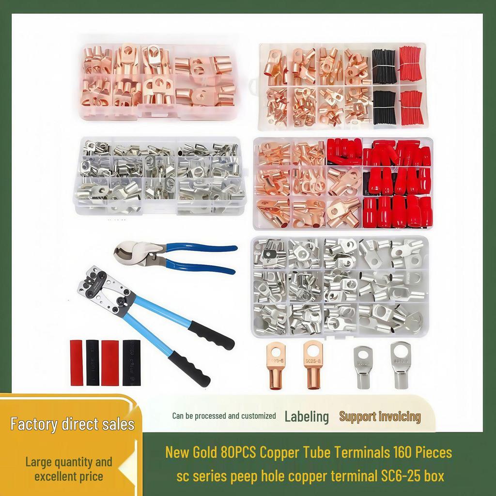 Copper Tube Terminals Set: 80-SC Series, 160-Piece Peep Hole SC6-25 Boxed