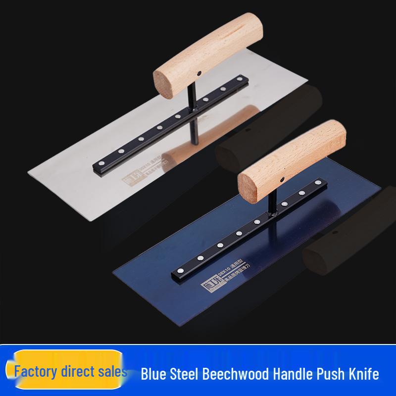 Bent Wood Handle Blue Steel Putty Knife & Drywall Scraper