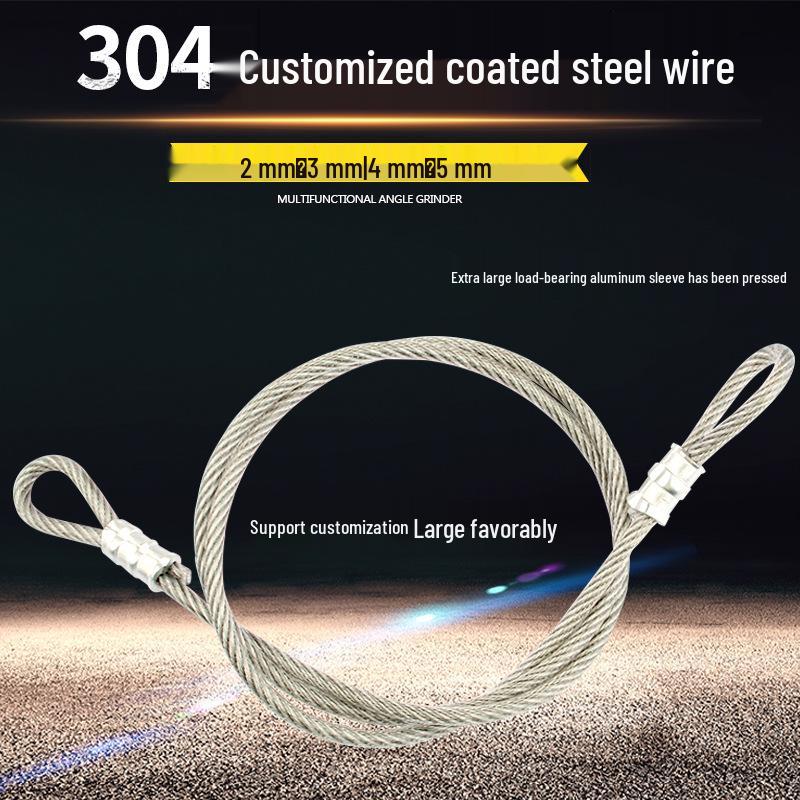 Plastic-Coated 304 Stainless Steel Wire Rope with Aluminum Sleeves, Anti-Theft Lock, and Machine Lifting Cable