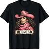 Stylish Black T-Shirt with Blessed Girl Floral Graphic in Pink Q1452