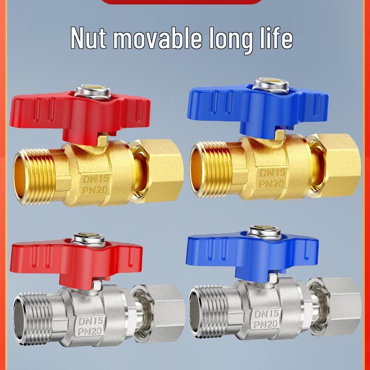 Full Copper Water Heater Union Ball Valve, Male/Female Thread, 6 to 4 Points Large Flow for Wall-Hung Boiler