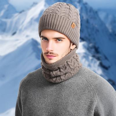 3Pcs/Set Men Hat Scarf Gloves Set Solid Color Twist Texture Brimless Hat Neckerchief Knitting Gloves Set Winter Accessories