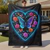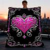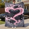 1pc Vibrant Heart & Key Design Flannel Blanket - Soft, Warm, All-Season Throw with Glittery Pink Hearts, Green Leaves, and Golde