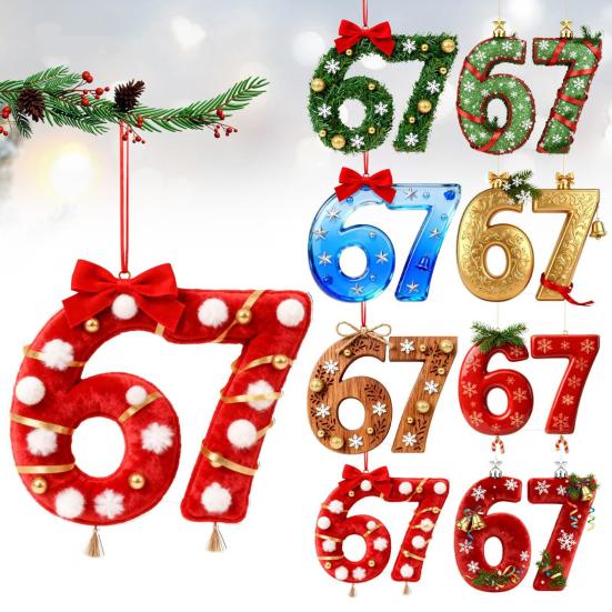 Iconic 67 Charm Decoration: Featuring the bold and playful 67 charm, this ornament captures internet culture with a humorous twist. Its eye-catching design brings instant laughter and joy, making it an ideal addition for those who appreciate Santa jokes and meme-inspired holiday decor.
