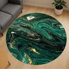 Abstract Marble Round Area Rug – Green Ink & Gold Line Design – Modern Luxury Carpet for Living Room or Bedroom, Soft Floor Mat