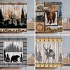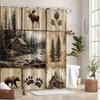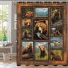 Rustic Bear Cabin Shower Curtain, Western Lodge Mountain Animal Design, Waterproof Polyester With Hooks
