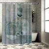 Green And White Shower Curtain Set Decor Bathroom Modern Art Print Shower Curtains For Home Decoration Waterproof Fabric Bath Li
