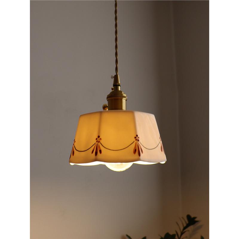 Retro Japanese Brass Glazed Ceramic Pendant Light for Bedroom, Dining, Bar, or Bay Window