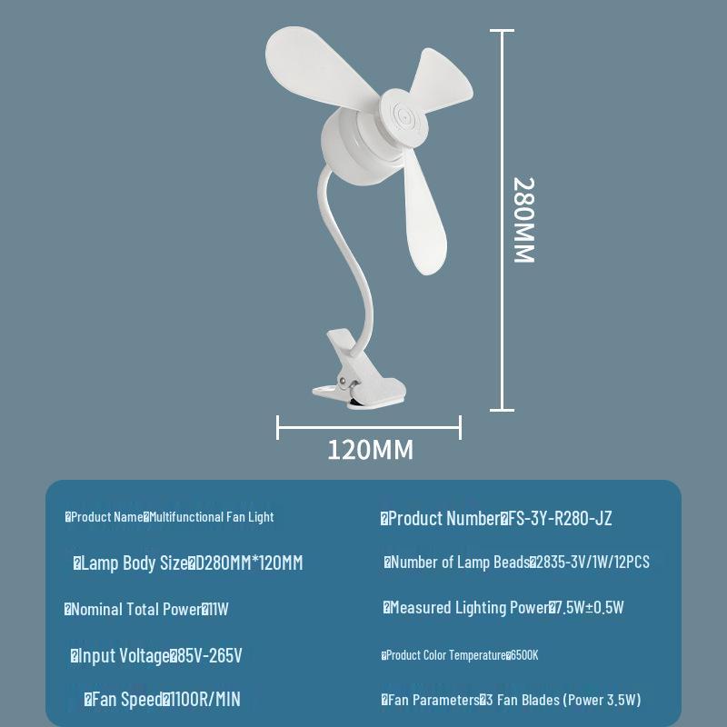 Silent Eye-Protecting Three-Blade Clip-On Fan Light with Three-Speed Adjustment for Bedroom or Living Room.