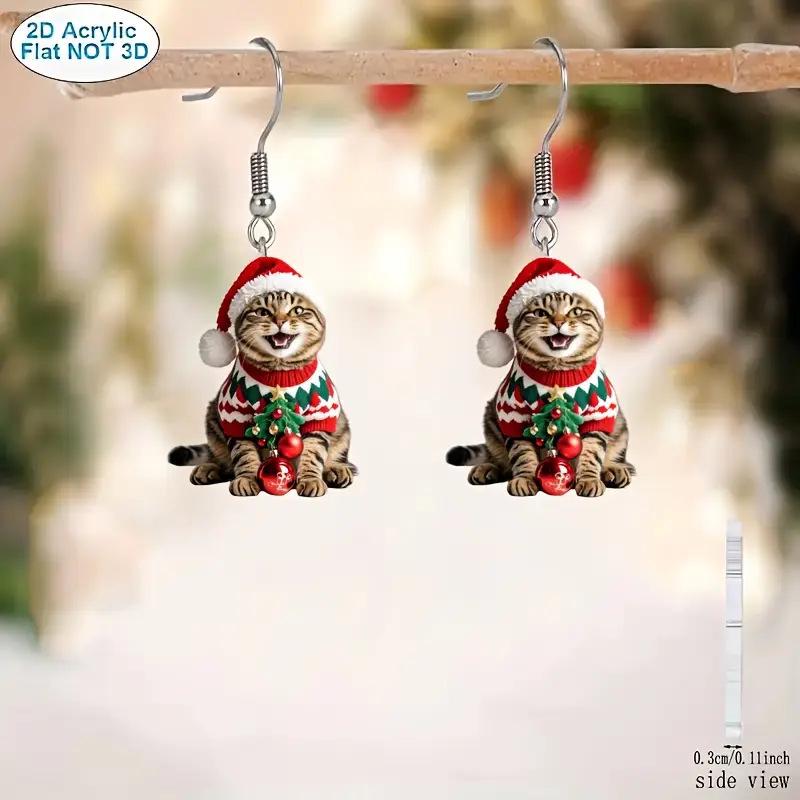 Christmas Kitten Earrings: Acrylic Cartoon Pet Lover Jewelry