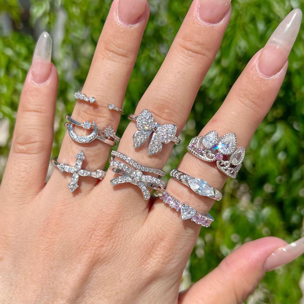 S925 Sterling Silver Bow Crown Zircon Ring - Women's Christmas Jewelry
