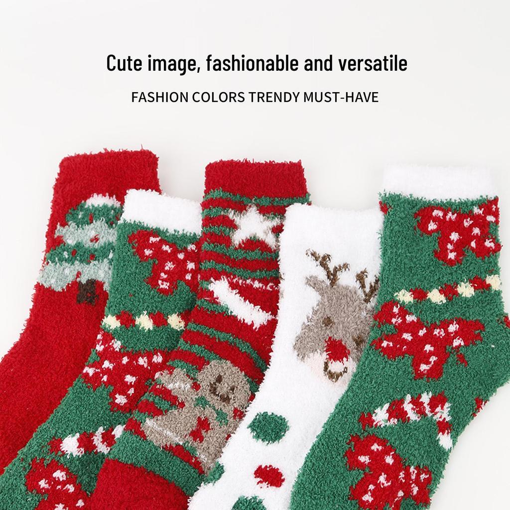 Women's Winter Cartoon Christmas Coral Fleece Floor and Sleep Socks