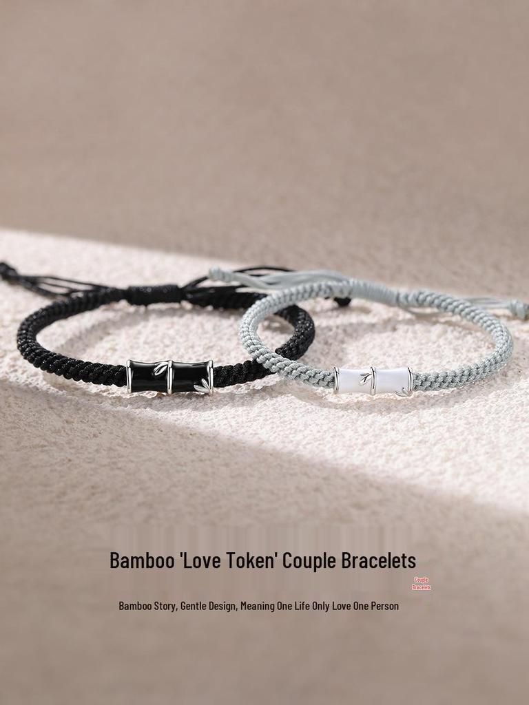 Sterling Silver Bamboo Couple Bracelets – Creative Student Style Hand Ropes, Perfect Christmas Gift for Girlfriend