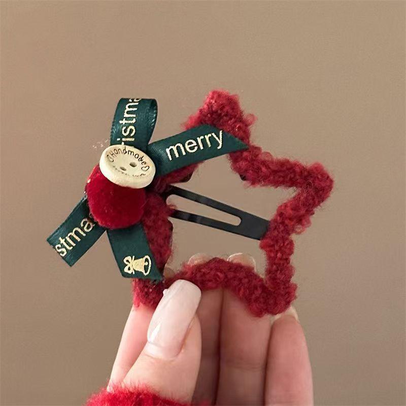 New Year Red Star Plush Hair Clip Bow Hairpin for Christmas