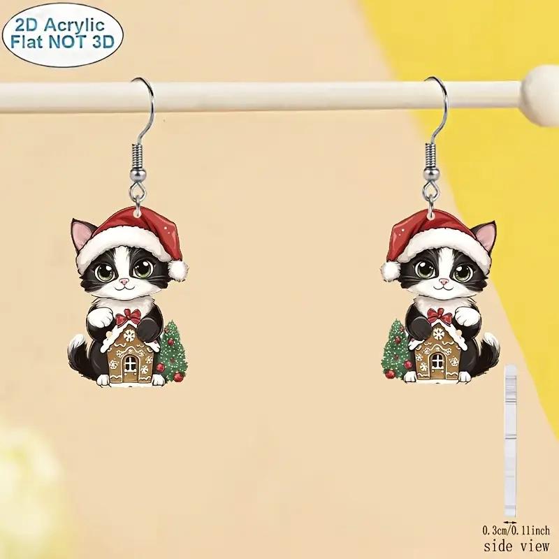 Bohemian Christmas Cat Santa Hat Acrylic Earrings