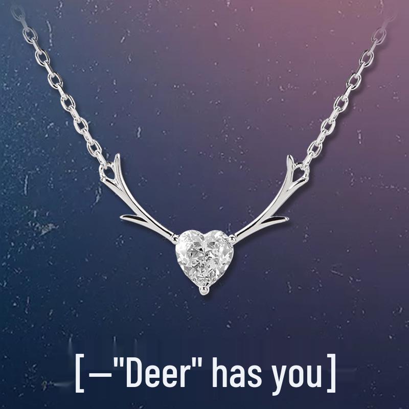 925 Silver Antler Clavicle Necklace for Women - Trendy Little Deer Pendant, Simple Christmas Gift