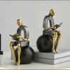 Reading Figurine Resin Bookend Decor Collectible Book Reader Sculpture Desktop Ornament for Shelves Study Room Desk Living Room