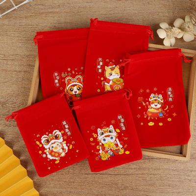 1 Pcs Red Year Of The Horse Bags Drawstring Chinese Zodiac Gift Pouch Candy Snack Wrapping Bag China New Yesr Party Favors Decor
