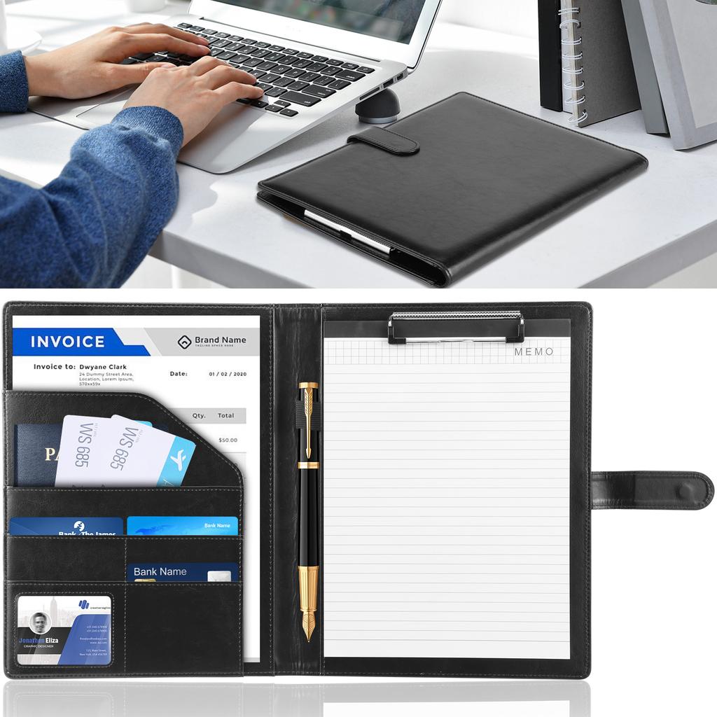 Multifunc A4 Conference Folder Business Stationery Folder Leather Contract File Folders A4 Writing Pad for Home School Office