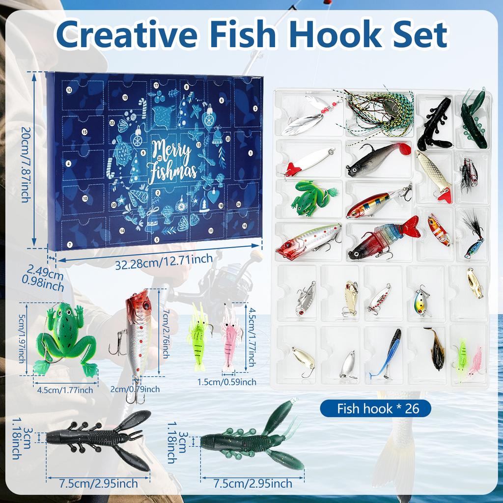 Fishing Advent Calendar Creative Fish Hook Set 24 Days Fishing Lure Advent Calendar Includes 26 Lures Christmas Gift for Fishers