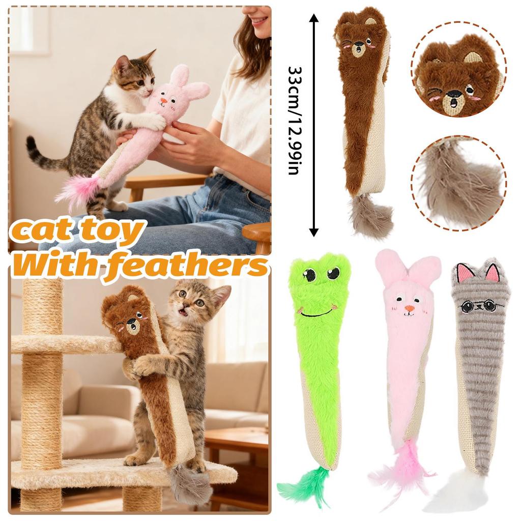 Cute Animal Shaped Pet Toy With Feather Tail, Soft Fabric Toy For Interactive Play And Exercise
