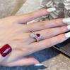 Avrupa ve Amerikan Lüks Kadın Platin Yüzükler Kırmızı Korindon Zirkon Mikro Set Yüzük Aksesuarları