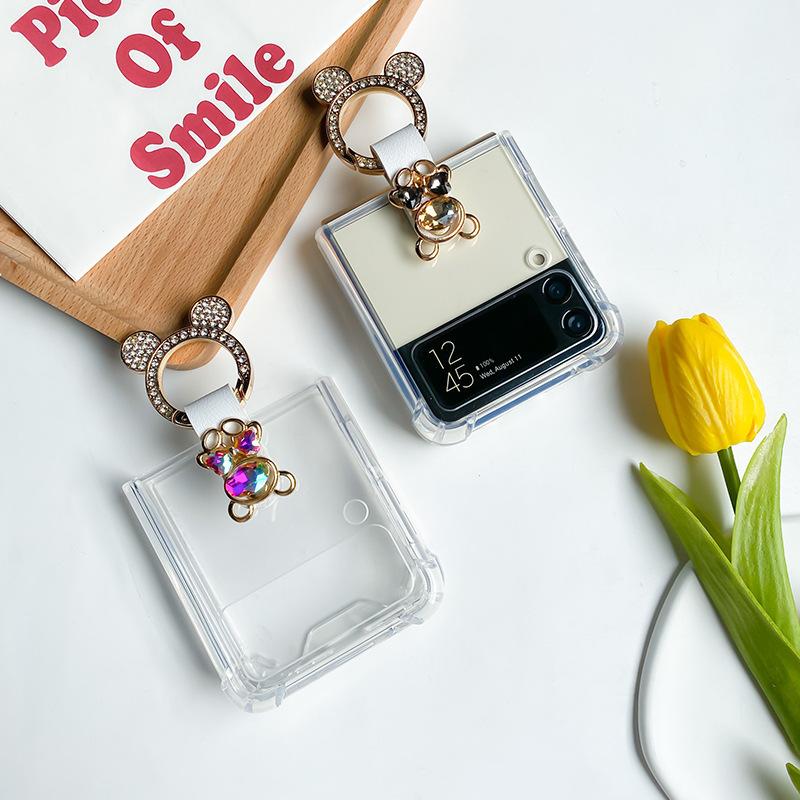 For Samsung ZFlip6 Airbag Anti-fall Flip Folding Screen Mobile Phone Case Rhinestone Bear 7 Transparent Simple Ring Ins