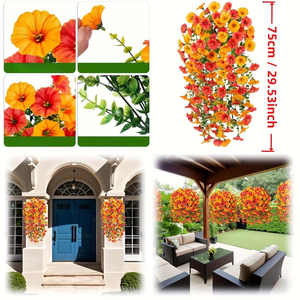 4pcs Artificial Hanging Trumpet Flowers -Outdoor Indoor Doorstep , Festive Home Accents, Floral Display Durable Flower Vines
