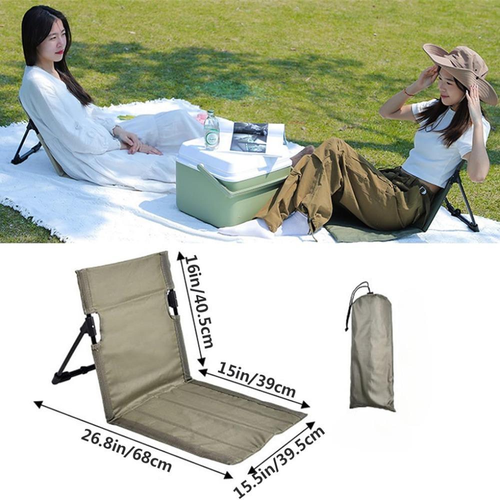 Portable Beach Mat Lounge Folding Chair with Back Support Folding Reclining with Back Net Pocket Lightweight Foldable Chair