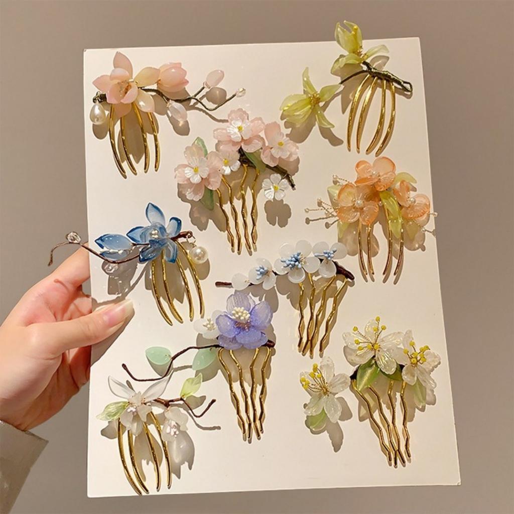Vintage Flower Hairpin Elegant Chinese Style Glass Flower Hair Comb For Women Girls Exquisite Fairy Metal Hair Accessories 1pc