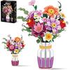 New Year Home Decor Artificial Flower Bouquet Building Blocks With Luminous Vase MOC Flowers Blocks DIY Kids Toys