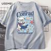 Cute Cartoon Print Short-sleeved Cotton Crew Neck Top Beach T-shirt Fashion Casual Loose Streetwear Oversized Top Unisex