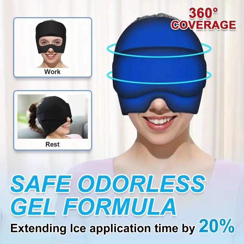2PCS SET Ice Cap And Ice Eye Mask, Migraine Headache Relief Hat, Cold Head Wrap, Gel Ice Pack, Sleeping Eye Mask For Puffy Eyes