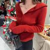 Red v-neck lapel knitted sweater women's spring and autumn early autumn design sweater with bottoming sweater knitted cardigan top