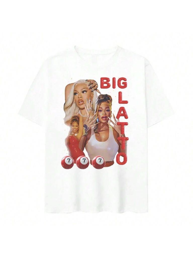 Rap Singer Latte Print Pattern T-Shirtwomen's Retro High-Quality Fashion T-Shirt Hip-Hop Oversized Tshirtstreet Wear