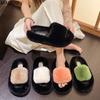 Fashion Comfortable Rabbit hair flat heel footwear cross belt thick bottom slide platform woman cotton slipper ladies fur open toe shoes