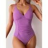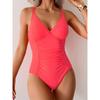 Plain Ruched V Neck Swimsuit 2025 Women One Piece Solid Swimwear Beachwear Summer Female Bather Swimming Swim Bodysuit Monokini