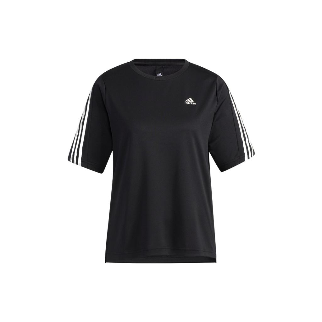 Adidas 24/7 Short Sleeve Tee Logo Print Striped Trim Ribbed Comfortable Crew Neck T-Shirt Women Tops Black H29488