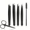 6pcs Eyebrow Grooming Kit: Stainless Steel Tweezers, Curved Scissors & Lash Brush - Perfect for Facial Hair Removal & Brow Shapi