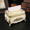 European-style Tissue Box Living Room Desktop Tissue Box Retro LuxuryTissue Case Rose Patterned Napkin Holder Home Decoration