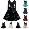 Women's Casual Fashion Valentine's Day Printed V-Neck Retro Long-Sleeve Dress