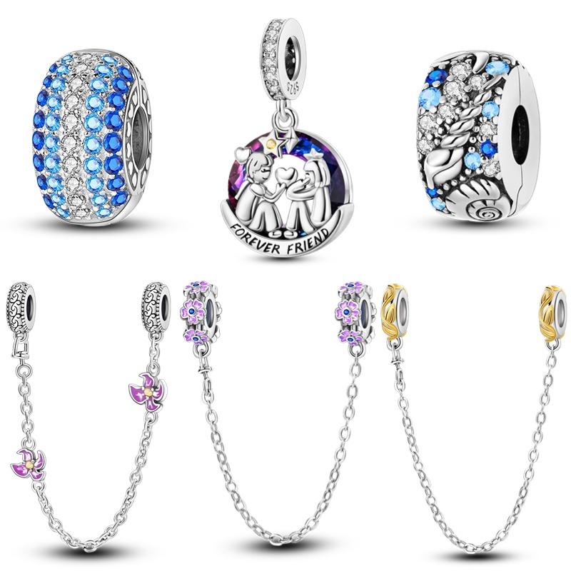 Original Copper Blue And Purple Flower Safety Chain Fit Pan Bracelet Diy Pendant Woman Party Jewelry Gifts